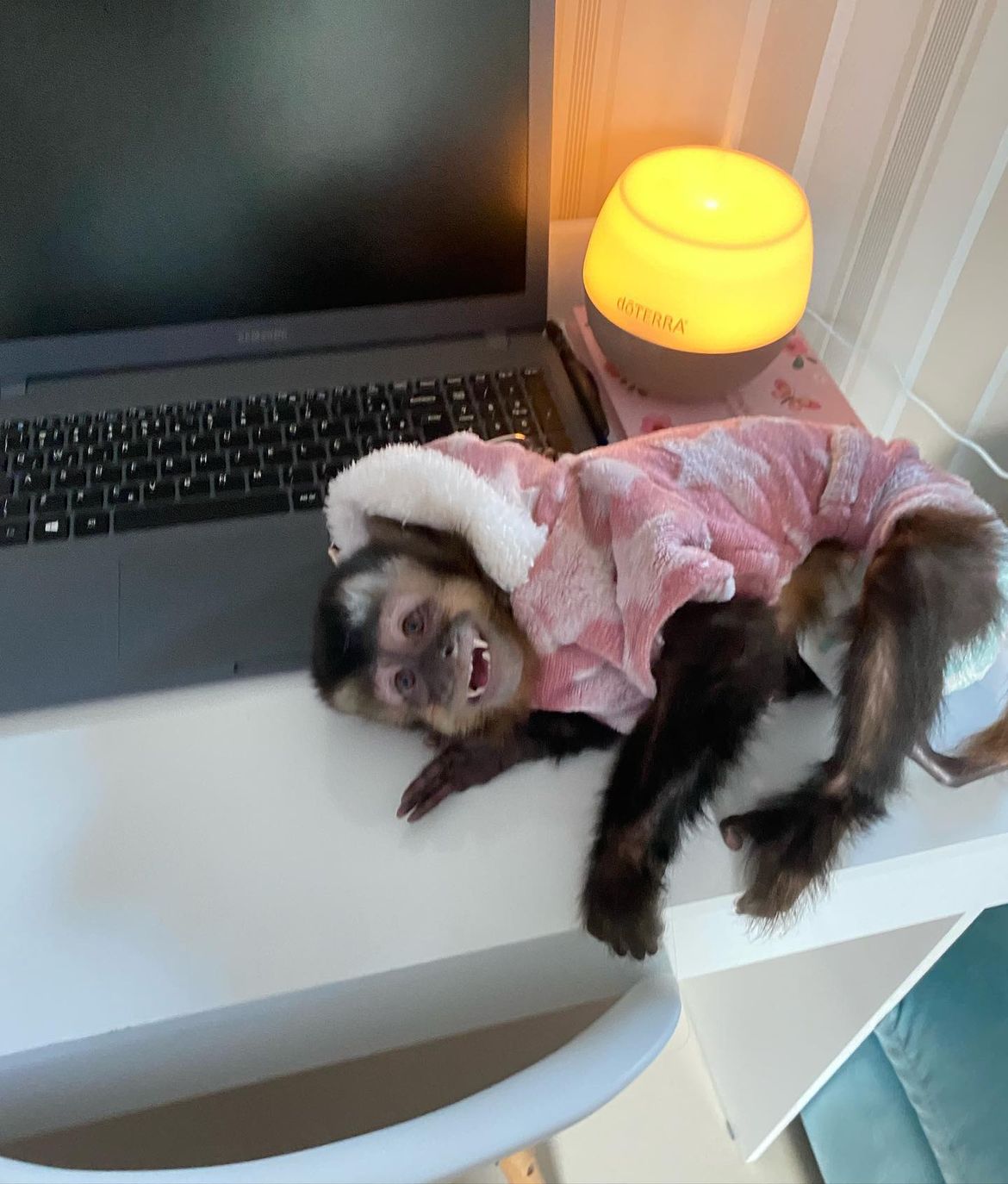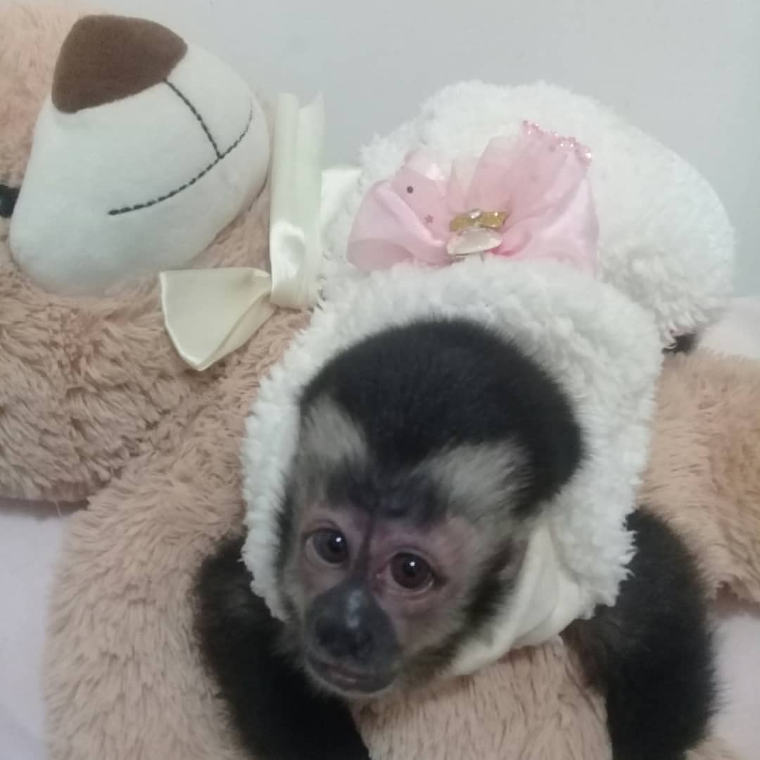 Meet Lucy, a female Capuchin monkey at the developmental age of 15 weeks. She is transitioning from total dependence, actively increasing the time she spends off her caregiver’s body. Her appearance features the characteristic rich brown and black fur, with a notably lighter face and chest. Lucy is intensely curious and playful, demonstrating a rapid increase in her independent activity and social play. She is perfecting her prehension, using her small hands to manipulate and mouth a wide variety of objects. Expect her to be highly communicative with chirps, trills, and soft vocalizations for contact. Lucy is learning complex social behaviors by watching and mimicking her older group members. Her continued reliance on security and engagement makes her a very endearing young primate.