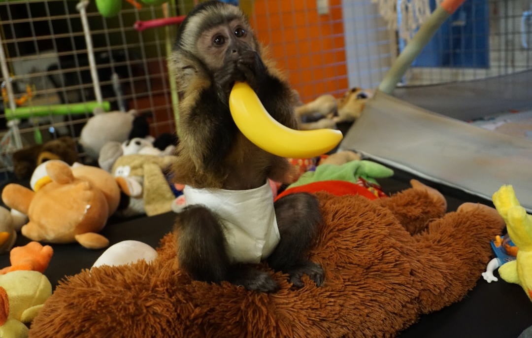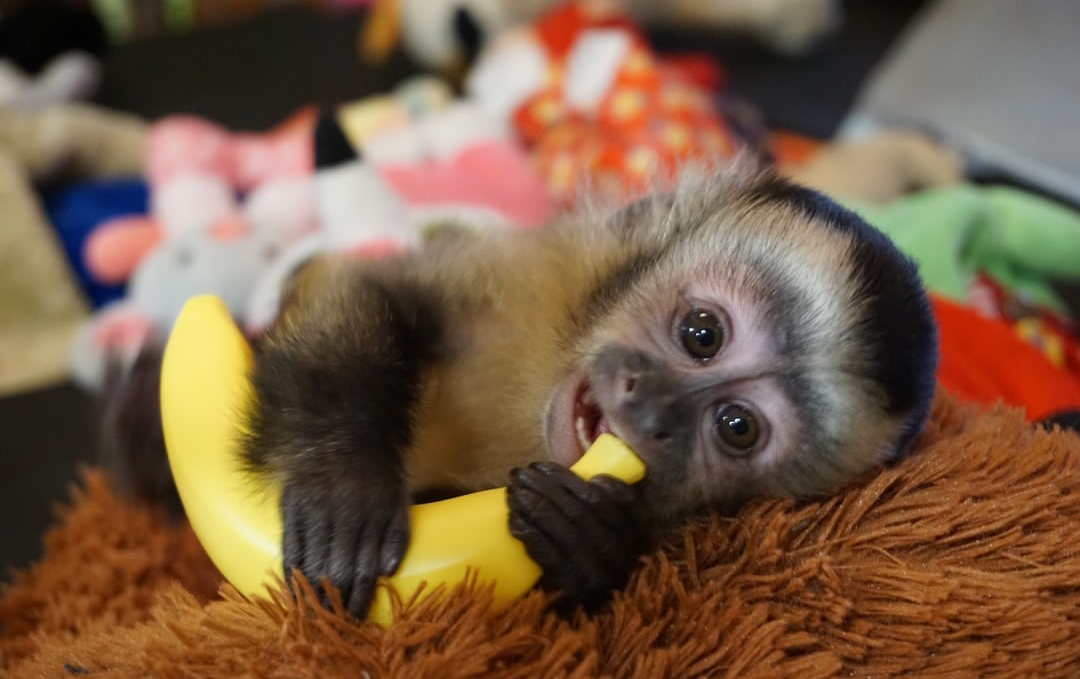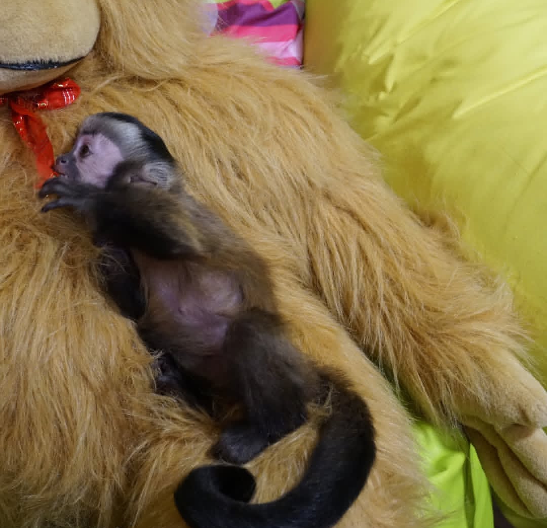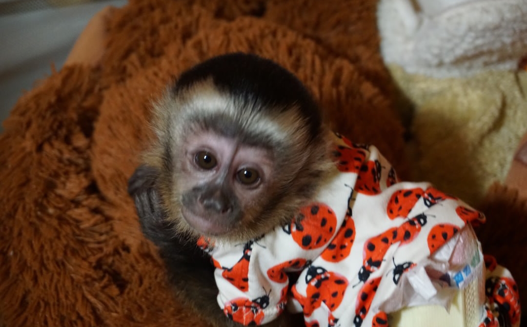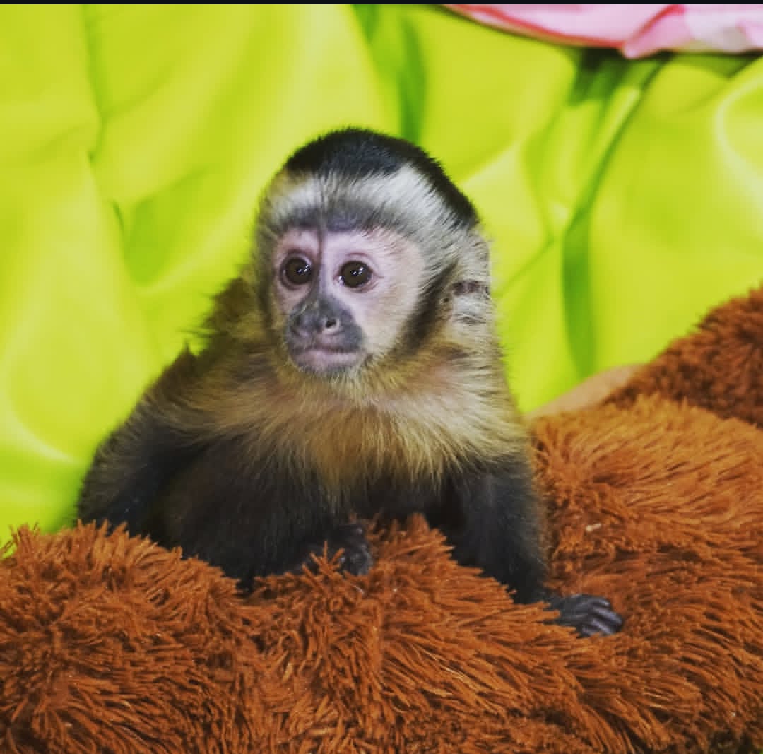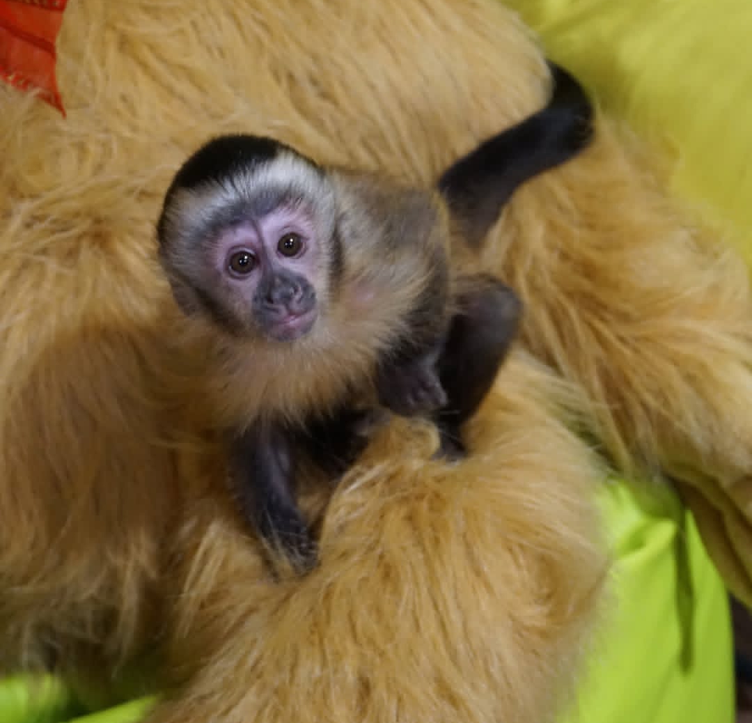 This is Nadia, a bright and highly intelligent 12-week-old female capuchin monkey. She possesses the clever nature and manipulative dexterity capuchins are known for. Nadia is actively exploring her environment and beginning to showcase her problem-solving skills. As a young female, she is engaging, social, and ready for a deep bond. She requires a dedicated owner experienced in providing complex enrichment and primate care. Nadia will offer a fascinating and interactive companionship experience.
